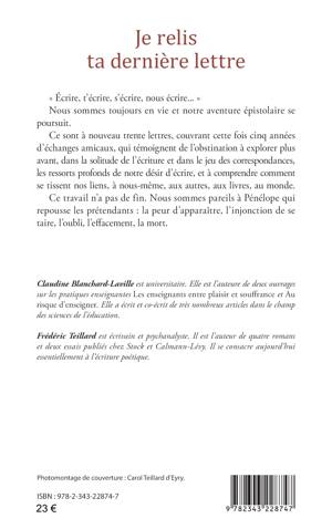 « Écrire, t’écrire, s’écrire, nous écrire... » Nous sommes toujours en vie et notre aventure épistolaire se poursuit. Ce sont à nouveau trente lettres, couvrant cette fois cinq années d’échanges amicaux, qui témoignent de l’obstination à explorer plus avant, dans la solitude de l’écriture et dans le jeu des correspondances, les ressorts profonds de notre désir d’écrire, et à comprendre comment se tissent nos liens, à nous-même, aux autres, aux livres, au monde. Ce travail n’a pas de fin. Nous sommes pareils à Pénélope qui repousse les prétendants : la peur d’apparaître, l’injonction de se taire, l’oubli, l’effacement, la mort.