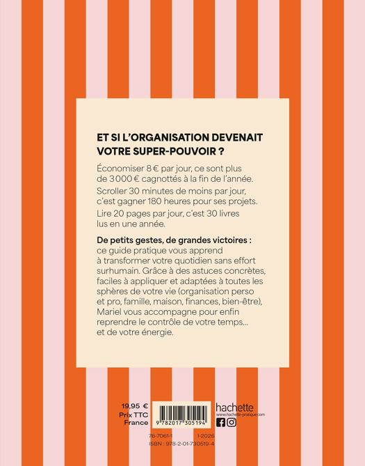 De petits gestes, de grandes victoires : ce guide pratique vous apprend à transformer votre quotidien sans effort surhumain. Grâce à des astuces concrètes, faciles à appliquer et adaptées à toutes les sphères de votre vie (organisation perso et pro, famille, maison, finances, bien-être), Mariel vous accompagne pour enfin reprendre le contrôle de votre temps… et de votre énergie.