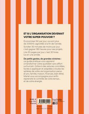 ET SI L’ORGANISATION DEVENAIT VOTRE SUPER-POUVOIR ? Économiser 8 € par jour, ce sont plus de 3 000 € cagnottés à la fin de l’année. Scroller 30 minutes de moins par jour, c’est gagner 180 heures pour ses projets. Lire 20 pages par jour, c’est 30 livres lus en une année.