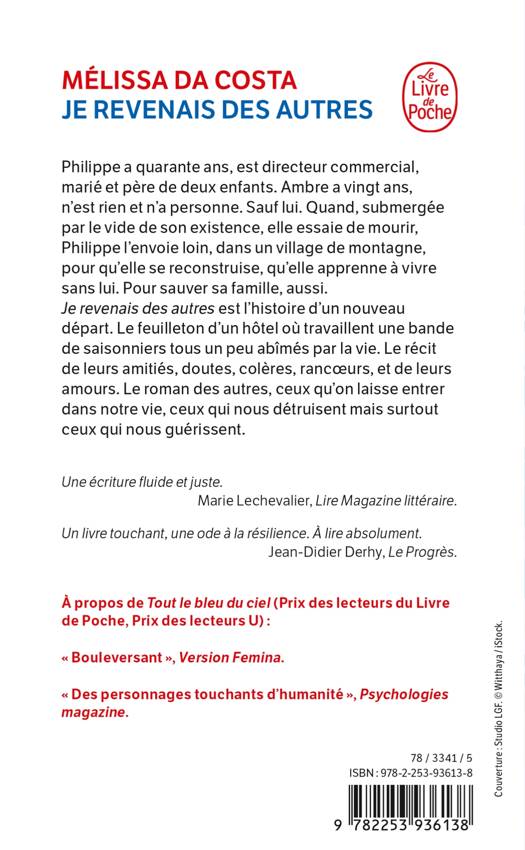 Je revenais des autres est l’histoire d’un nouveau départ. Le feuilleton d’un hôtel où vit une bande de saisonniers tous un peu abîmés par la vie. Le récit de leurs amitiés, doutes, colères, rancœurs, amours aussi. Le roman des autres, ceux qu’on laisse entrer dans sa vie, ceux qui nous détruisent mais surtout ceux qui nous guérissent.