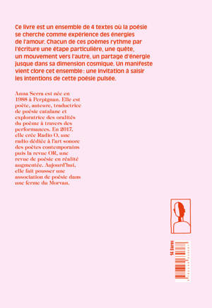 Ce livre est un ensemble de 4 textes où la poésie se cherche comme expérience des énergies de l'amour. Chacun des poèmes rythme par l'écriture une étape particulière, une quête, un mouvement vers l'autre, un partage d'énergie jusque dans sa dimension cosmique. Un manifeste vient clore cet ensemble : une invitation à saisir les intentions de cette poésie pulsée.