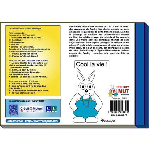 Destiné aux enfants (7/12 ans) et aux adultes, le tome I des Aventures de Freddy Mut Junior aborde de façon amusante le quotidien de cette tranche d’âge. L’amitié, le passage en sixième, les conversations d’après cantine, les relations avec les parents et les rapports dans une fratrie sont les principaux thèmes de cette saga familiale. Trois lapins partagent la vedette de cet album. Freddy le héros a onze ans et entre en sixième. P’tite sœur, sa sœur de 8 ans, est allergique à la salle de bain. Enfin Franky, à l’âge indéfinissable et meilleur copain de Freddy, redouble une nouvelle fois sa sixième.