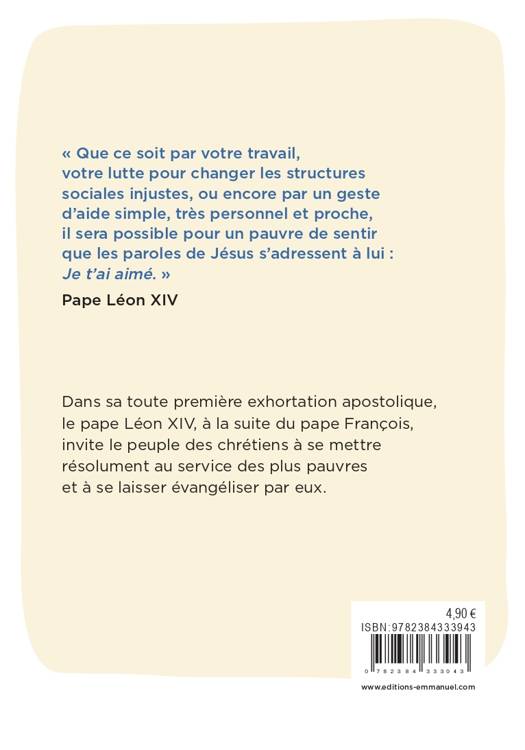 « Que ce soit par votre travail, votre lutte pour changer les structures sociales injustes, ou encore par un geste d’aide simple, très personnel et proche, il sera possible pour un pauvre de sentir que les paroles de Jésus s’adressent à lui : Je t’ai aimé. » Pape Léon XIV