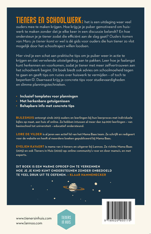 Tieners en schoolwerk: het is een uitdaging waar veel ouders mee te maken krijgen. Hoe krijg je je puber gemotiveerd om huiswerk te maken zonder dat je elke keer in een discussie belandt? En hoe ondersteun je je tiener zodat die efficiënt aan de slag gaat? Ouders komen van Mars: je tiener komt er wel is dé gids voor ouders die hun tiener zo vlot mogelijk door het schooltraject willen loodsen.