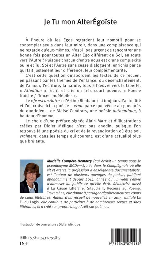 Puisque chacun d'entre nous est une complexité où Je et Tu, Soi et l'Autre sans cesse dialoguent, enrichis par ce qui fait justement leur différence, leur complémentarité. C'est cette question qu'abordent les textes de ce recueil, en passant par les thèmes de l'enfance, du désenchantement, de l'amour, l'écriture, la nature, tous à l'oeuvre vers la Liberté.