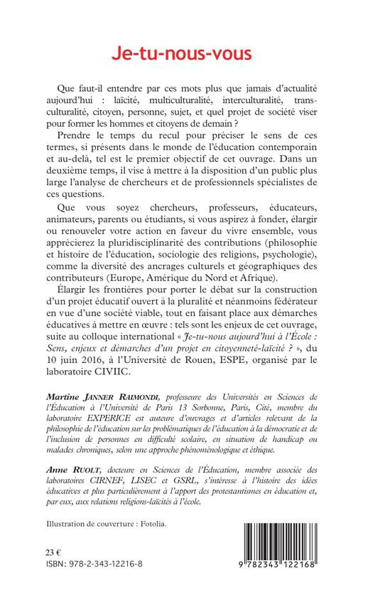 La pluridisciplinarité de ces contributions comme la diversité des ancrages culturels et géographiques des contributeurs élargit les frontières et renouvelle l'action en faveur du vivre ensemble. Quel projet de société viser pour former les hommes et citoyens de demain ?