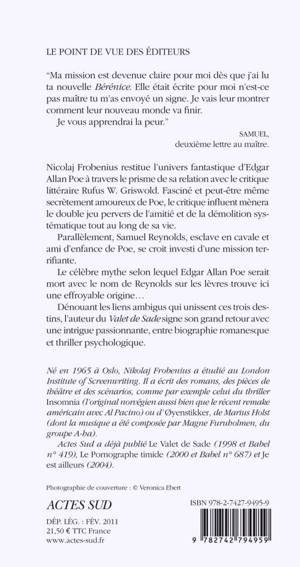 Nicolaj Frobenius restitue l'univers fantastique d'Edgar Allan Poe à travers le prisme de sa relation avec le critique littéraire Rufus W. Griswold. Fasciné et peut-être même secrètement amoureux de Poe, le critique influent mènera le double jeu pervers de l'amitié et de la démolition systématique tout au long de sa vie.