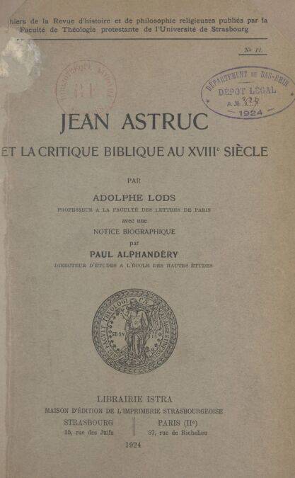 5. Jean Astruc et la critique biblique au XVIIIe siècle