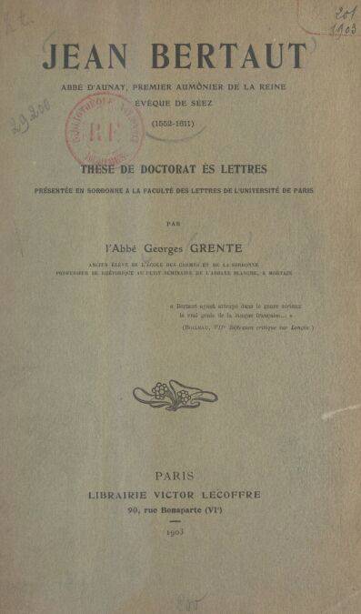 Jean Bertaut, abbé d'Aunay, premier aumônier de la reine, évêque de Séez (1552-1611) EBOOK