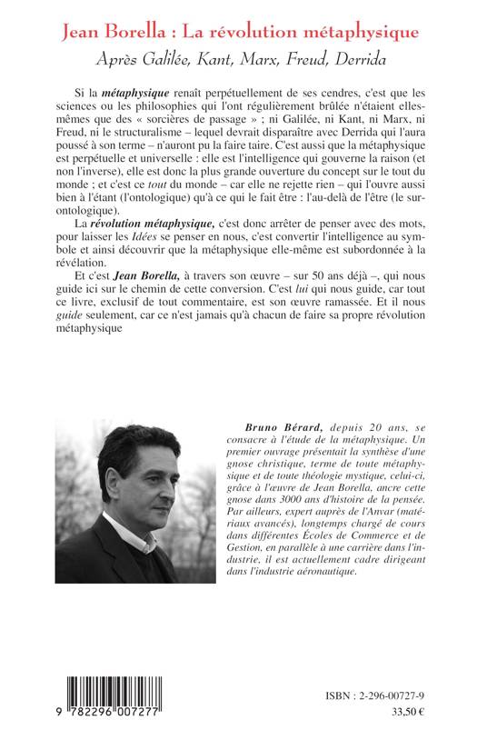 La métaphysique renaît perpétuellement de ses cendres. Ni Galilée, ni Kant, ni Marx, ni Freud, ni le structuralisme n'auront pu la faire taire. La "révolution métaphysique", c'est arrêter de penser avec des mots, pour laisser les "idées" se penser en nous, c'est convertir l'intelligence au symbole et ainsi découvrir que la métaphysique elle-même est subordonnée à la révélation. Et c'est "Jean Borella", à travers son oeuvre - sur 50 ans déjà -, qui nous guide ici sur le chemin de cette conversion.