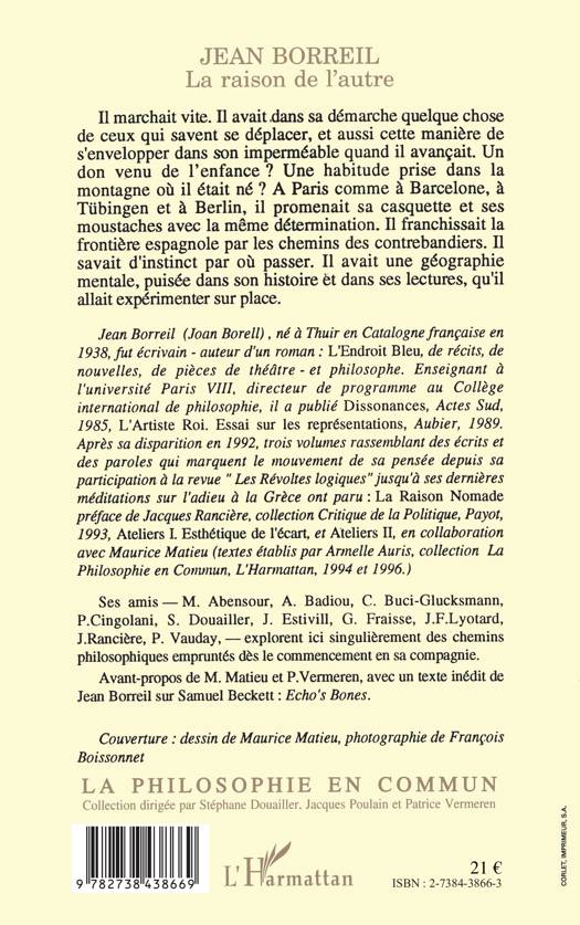 Les chemins philosophiques empruntés par Jean Borreil ou Joan Borell (1938-1992) et un texte inédit sur Samuel Beckett.