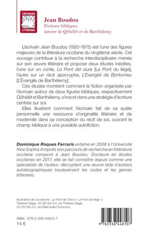 L’écrivain Jean Boudou (1920-1975) est l’une des figures majeures de la littérature occitane du vingtième siècle. Cet ouvrage contribue à la recherche interdisciplinaire menée sur son œuvre littéraire et propose deux études inédites, l’une sur un conte, Lo Pont del siure [Le Pont du liège], l’autre sur un récit apocryphe, L’Evangèli de Bortomieu [L’Évangile de Barthélemy].