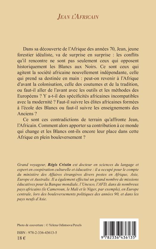 Dans sa découverte de l'Afrique des années 70, Jean, jeune forestier idéaliste, va de surprise en surprise: les conflits qu'il rencontre ne sont pas seulement ceux qui opposent historiquement les Blancs aux Noirs. Ce sont ceux qui agitent la société africaine nouvellement indépendante, celle qui prend sa destinée en main: peut-on revenir à l'Afrique d'avant la colonisation, celle des coutumes et de la tradition, ou faut-il aller de l'avant avec les outils et les méthodes des Européens ? Y a-t-il des spécificités africaines incompatibles avec la modernité ? Faut-il suivre les élites africaines formées à l'école des Blancs ou faut-il suivre les enseignements des Anciens ? Ce sont ces contradictions de terrain qu'affronte Jean, l'Africain. Comment alors apporter sa contribution à ce monde qui change et les Blancs ont-ils encore leur place dans cette Afrique en plein bouleversement ?