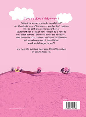 Coup de mou pour Jean-Michel ! Le caribou super-héros est las de sauver tous les matins René lapin de la noyade ou d'aider Bernard l'écureuil à casser ses noisettes. Il sent la routine et rêve de nouveauté. C'est alors qu'il a une révélation en voyant l'annonce d'un concours du Meilleur Pâtissier organisé à Vlalbonvent. Jean-Michel se jette à corps perdu dans la compétition. Hélas, ses gâteaux sont immangeables ! Un super-héros n'a pas tous les talents. Mais, au moment des vraies catastrophes, on peut toujours compter sur lui.
