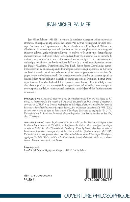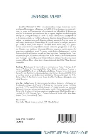 Jean-Michel Palmier (1944-1998) a consacré de nombreux ouvrages et articles aux courants artistiques, philosophiques et politiques des années 1920-1930 en Allemagne et en Union soviétique. Ses travaux notamment sur l'Expressionnisme et la vie culturelle sous la République de Weimar permettent aux lecteurs de mieux comprendre les multiples controverses qui opposèrent au XXe siècle des théoriciens et des praticiens se réclamant de différents et antagonistes courants marxistes.