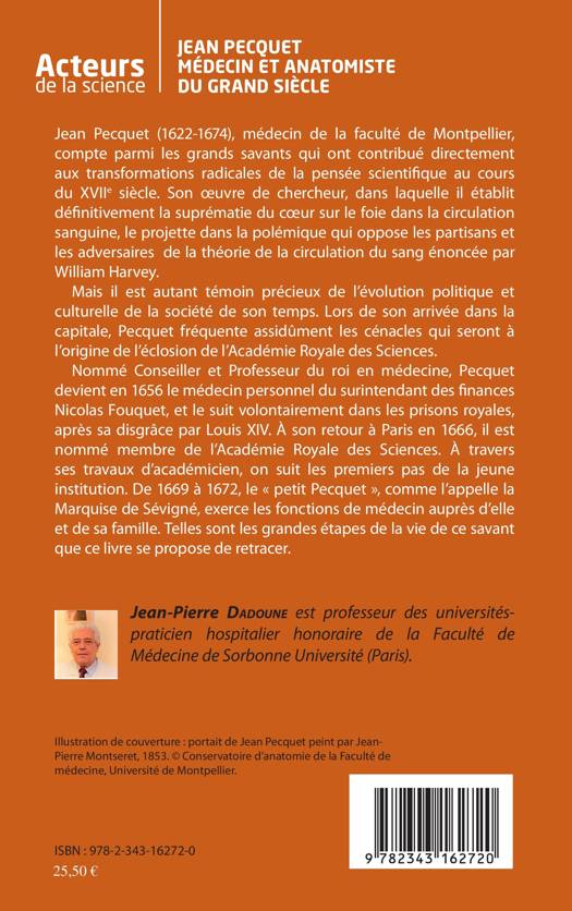 Jean Pecquet (1622-1674), médecin de la faculté de Montpellier, compte parmi les grands savants qui ont contribué directement aux transformations radicales de la pensée scientifique au cours du XVIIe siècle. Son oeuvre, dans il établit la suprématie du coeur sur le foie dans la circulation sanguine, le projette dans la polémique sur la théorie de la circulation du sang énoncée par William Harvey. Mais il est aussi un témoin de l'évolution politique et culturelle de son temps : il sera Académicien et Conseiller et professeur de Louis XIV en médecine