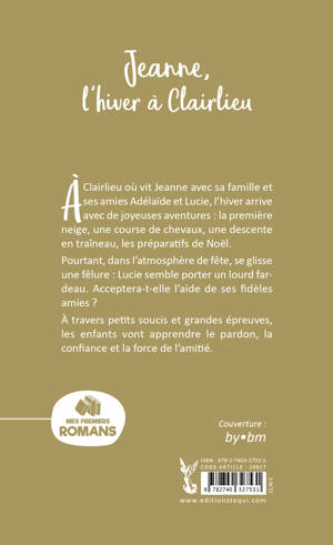 Nous retrouvons au coeur de l'hiver Jeanne et sa famille : sa maman médecin qui assume courageusement son veuvage , ses petits frère et soeur Pauline et Antoine , son intrépide et amusant cousin Étienne, toujours prêt pour de nouvelles aventures qui soient le plus casse-cou possibles , ses amies, la douce Adélaïde et l'impétueuse Lucie. Au milieu des joies de l'hiver (la première neige, une course de chevaux, une descente en traîneau, les préparatifs de Noël) se glisse une fêlure provenant de l'attitude de Lucie : impulsive et ombrageuse, la petite fille semble porter un lourd fardeau. Acceptera-t-elle l'aide de ses amies dans l'épreuve familiale qu'elle traverse ? À travers petits soucis et grandes épreuves, les enfants vont grandir et apprendre le pardon, la solidarité, la force de l'amitié.