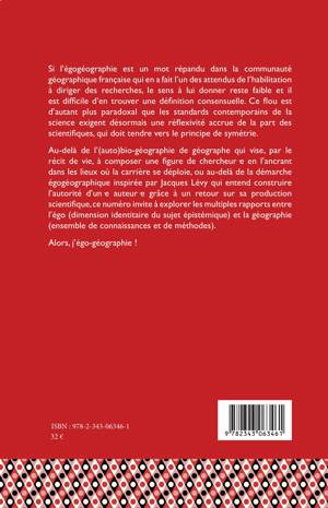 Si l'égogéographie est un mot répandu dans la communauté géographique française qui en fait l'un des attendus de l'habilitation à diriger des recherches, le sens à lui donner reste faible et il est difficile d'en trouver une définition consensuelle. Au-delà de l'(auto)bio-géographie de géographe qui vise à composer une figure de chercheur/e en l'ancrant dans les lieux où la carrière se déploie, ce numéro invite à explorer les multiples rapports entre l'égo et la géographie.