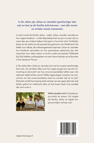 In 2019 wordt de familie Jelies – vader Johan, moeder Janneke en hun negen kinderen – in één klap bekend als ze op tv te zien zijn en meer dan een miljoen kijkers het gezin in hun hart sluit. Sindsdien behoren de Jelies tot de populairste gezinnen van Nederland. De liefde voor elkaar, de onbevangenheid waarmee Johan en Janneke hun kinderen opvoeden en hun grenzeloze optimisme zijn een inspiratie voor velen, zeker nu ze hun oude woonplaats Tollebeek (bij Urk) hebben achtergelaten om een nieuw bestaan op te bouwen in het Spaanse Pinoso.