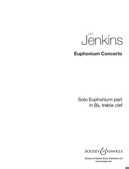 (Boosey & Hawkes Chamber Music). Karl Jenkins' Euphonium Concerto is a major addition to the euphonium repertory, commissioned by Euphonium Foundation UK for David Childs. Cast in four characterful movements it demands both expressive and technical prowess on the part of the soloist, and its charm, exhilaration and wit will delight audiences. The Juggler effortlessly entertains, Romanza waxes lyrical, and It takes two..., an atmospheric tango-style episode, reveals hidden depths. A Troika? Tidy! is the thrilling finale, and a showcase for the soloist's mastery of rapid passage-work. Recorded on Doyen DOY CD262, by David Childs and Cory Band, conducted by Robert Childs. Treble Clef part.