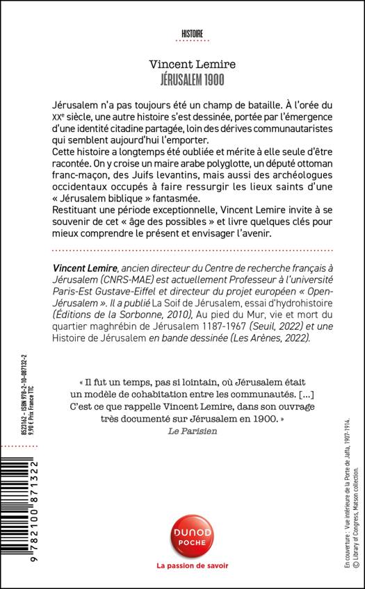 Jérusalem n’a pas toujours été un champ de bataille. À l’orée du XX e siècle, une autre histoire s’est dessinée, portée par l’émergence d’une identité citadine partagée, loin des dérives communautaristes qui semblent aujourd’hui l’emporter. Cette histoire a longtemps été oubliée et mérite à elle seule d’être racontée. On y croise un maire arabe polyglotte, un député ottoman franc-maçon, des Juifs levantins, mais aussi des archéologues occidentaux occupés faire ressurgir les lieux saints d’une « Jérusalem biblique » fantasmée. Restituant une période exceptionnelle, Vincent Lemire invite à se souvenir de cet « âge des possibles » et livre quelques clés pour mieux comprendre le présent et envisager l’avenir.