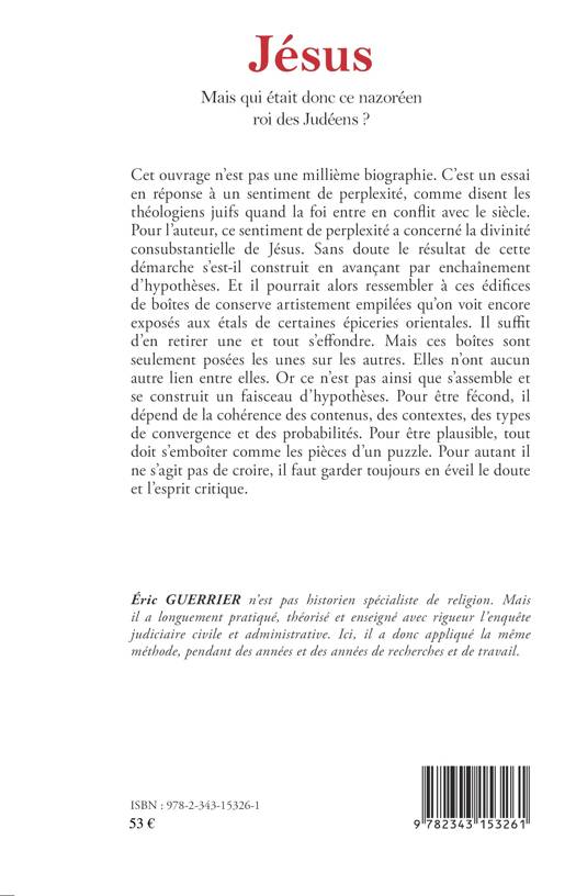 Sans esprit polémique, cet essai répond au sentiment de perplexité, terme de théologie quand la foi est en conflit avec le siècle. Comment l'homme ayant vécu au temps d'Auguste, prédestiné à devenir messie du seul Peuple élu, a pu être effacé derrière le Christ Dieu d'une religion universelle ? Sans toucher à la foi, peut-on essayer par une démarche historique de dégager la vie du Jésus qui est censé l'avoir incarné ? Est-ce encore possible ? La surprise vient de la découverte de tout ce qui se savait depuis toujours, puis de ce qui émerge avec l'avancement des sciences concernées. Tout est alors question de méthode, et non d'y croire ou pas.