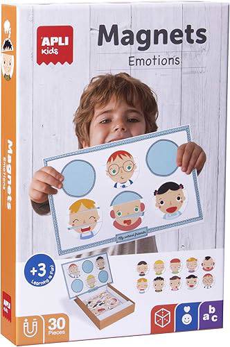 Jeu magnétique modèle émotions créer différents visages et identifier l'état d'esprit des personnages. Chaque jeu comprend : 1 support aimanté de 28 x 18 cm à emboîter et 30 pièces sur le thème des émotions. Fiches explicatives en 19 langues différentes. Design exclusif APLI Kids aux illustrations originales et amusantes. Jeu à haute valeur didactique : stimule l'observation et l'imagination, augmente la capacité de concentration et d'attention et éveille l'intérêt dans les objets, les animaux et les personnages. Recommandé pour les enfants à partir de 3 ans.
