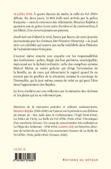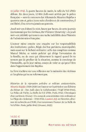 16 juillet 1942. À quatre heures du matin, la rafle du Vel d'Hiv débute. En deux jours, 12 884 Juifs sont arrêtés par la police française - sans le concours des Allemands. Maurice Rajsfus a quatorze ans et, grâce à une suite d'ordres et de contreordres, il est libéré ; il ne reverra jamais ses parents.