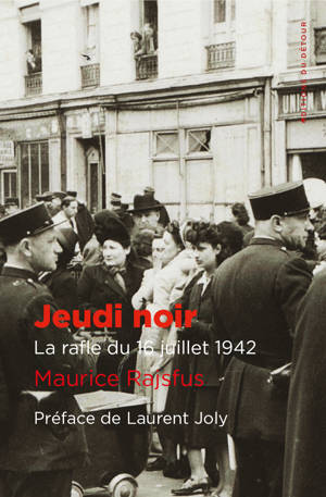 Jeudi noir est d'abord le récit, heure par heure, de cette journée (surnommée par les victimes, Der Finzterer Donerztig : « le jeudi noir » en yiddish) qui restera une tache indélébile dans l'histoire de l'administration française.