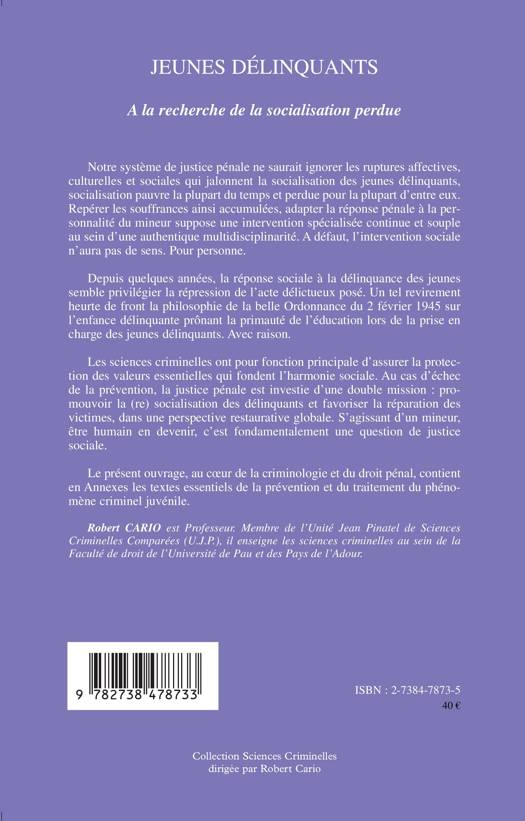 Les sciences criminelles ont pour fonction principale d'assurer la protection des valeurs essentielles qui fondent l'harmonie sociale. Au cas d'échec de la prévention, la justice pénale est investie d'une double mission : promouvoir la (re)socialisation des délinquants et favoriser la réparation des victimes, dans une perspective restaurative globale. S'agissant d'un mineur, être humain en devenir, c'est fondamentalement une question de justice sociale. (Deuxième édition)