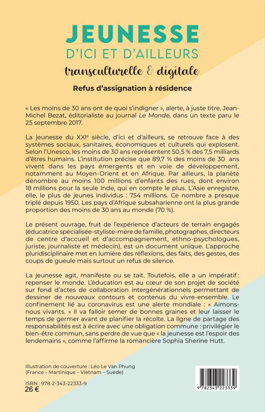 La jeunesse du XXIe siècle, d’ici et d’ailleurs, se retrouve face à des systèmes sociaux, sanitaires, économiques et culturels qui explosent. Le présent ouvrage, fruit de l’expérience d’acteurs de terrain engagés, est un document unique. L’approche pluridisciplinaire met en lumière des réflexions, des faits, des gestes, des coups de gueule mais surtout un refus de silence. La jeunesse agit, manifeste ou se tait. Toutefois, elle a un impératif : repenser le monde. L’éducation est au coeur de son projet de société sur fond d’actes de collaboration intergénérationnels permettant de dessiner de nouveaux contours et contenus du vivre-ensemble.