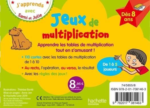 Retrouvez Sami, Julie pour apprendre les tables de multiplication tout en s’amusant ! Ce boitier contient 110 cartes pour réviser les tables de multiplication de 1 à 10. Au recto figure l’opération, au verso le résultat présenté par Sami ou Julie. Plusieurs jeux sont possibles du plus simple au plus complexe pour les fortiches ! Un livret de règles du jeu est inclu dans le boitier.