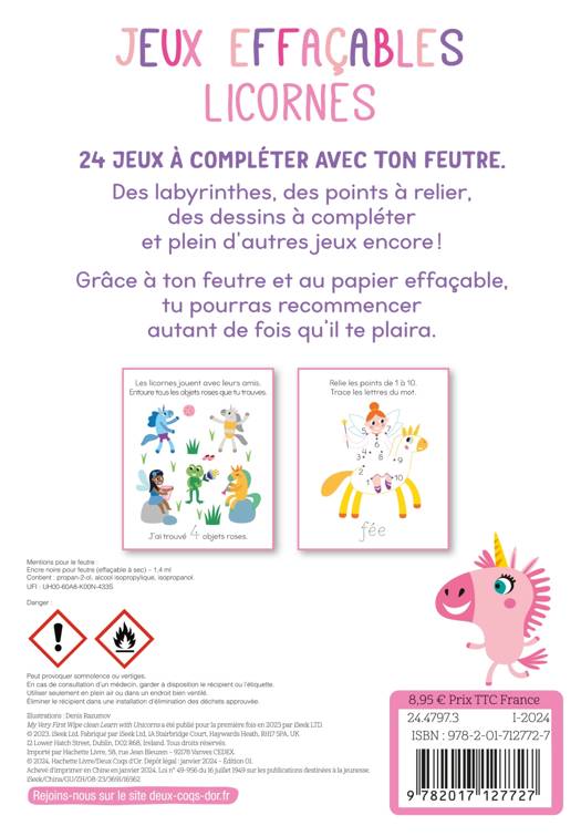 Jeux effaçable Licornes avec feutre Velleda