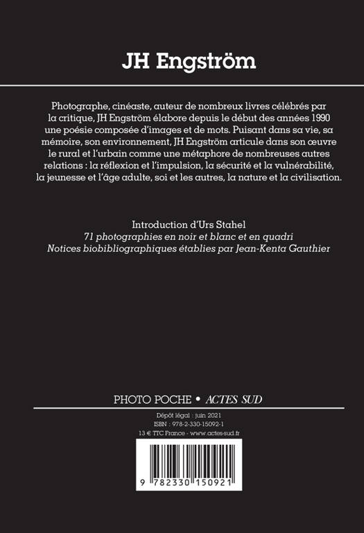 Photographe, cinéaste, auteur de nombreux livres célébrés par la critique, JH Engström élabore depuis le début des années 1990 une poésie composée d'images et de mots. Puisant dans sa vie, sa mémoire, son environnement, JH Engström articule dans son oeuvre le rural et l'urbain comme une métaphore de nombreuses autres relations : la réflexion et l'impulsion, la sécurité et la vulnérabilité, la jeunesse et l'âge adulte, soi et les autres, la nature et la civilisation.