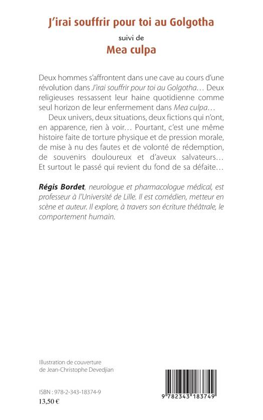 Deux hommes s'affrontent dans une cave au cours d'une révolution dans "J'irai souffrir pour toi au Golgotha"... Deux religieuses ressassent leur haine quotidienne comme seul horizon de leur enfermement dans "Mea culpa"... Deux univers, deux situations, mais une même histoire de mise à nu des fautes et de volonté de rédemption, de souvenirs douloureux et d'aveux salvateurs.