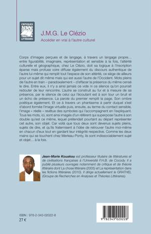 Dans cet ouvrage, l'auteur veut montrer combien Le Clézio adopte une attitude originale dans son approche itinérante vers l'Autre géographique et culturel. Celle-ci emprunte certes quelque peu à la dimension éthique de Lévinas, à ce désir qui construit la relation nécessaire du Moi à l'Autre au-delà des images et s'établit dans la présence qui en fait un corps, un visible comme chez Merleau-Ponty. Mais l'entreprise reste fondamentalement orientée par l'authenticité et la vérité que cet Autre profère en personne en tant que sujet narratif et poétique.