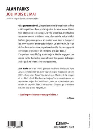 Dans ce cinquième volet, l'inspecteur Harry McCoy engage une course contre la-montre pour retrouver des jeunes délinquants mystérieusement kidnappés, dans une Glasgow plus noire que jamais. Une série désormais incontournable qui a gagné un lectorat de plus en plus nombreux. Parks continue d'explorer la ville de Glasgow au début des années 70 mais il se renouvelle à chaque fois. Un sens des dialogues et du rythme toujours aussi aiguisé. Un talent de conteur qui rend la lecture addictive.