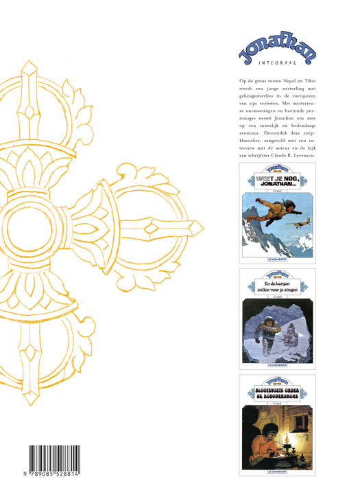 Op de grens tussen Nepal en Tibet treedt een jonge westerling met geheugenverlies in de voetsporen van zijn verleden. Met mysterieuze ontmoetingen en boeiende personages neemt Jonathan ons mee op een innerlijk en hedendaags avontuur. Herontdek deze stripklassieker, aangevuld met een interview met de auteur en de kijk van schrijfster Claude B. Levenson.