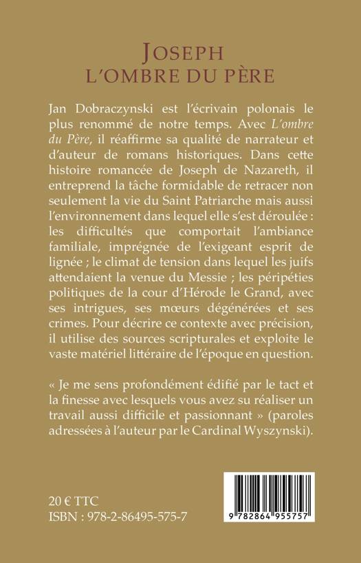 Dans cette histoire romancée de Joseph de Nazareth, il entreprend la tâche formidable de retracer non seulement la vie du Saint Patriarche mais aussi l'environnement dans lequel elle s'est déroulée : les difficultés que comportait l'ambiance familiale, imprégnée de l'exigeant esprit de lignée , le climat de tension dans lequel les juifs attendaient la venue du Messie , les péripéties politiques de la cour d'Hérode le Grand, avec ses intrigues, ses moeurs dégénérées et ses crimes. Pour décrire ce contexte avec précision, il utilise des sources scripturales et exploite le vaste matériel littéraire de l'époque en question.« Je me sens profondément édifié par le tact et la finesse avec lesquels vous avez su réaliser un travail aussi difficile et passionnant » (paroles adressées à l'auteur par le Cardinal Wyszynski).