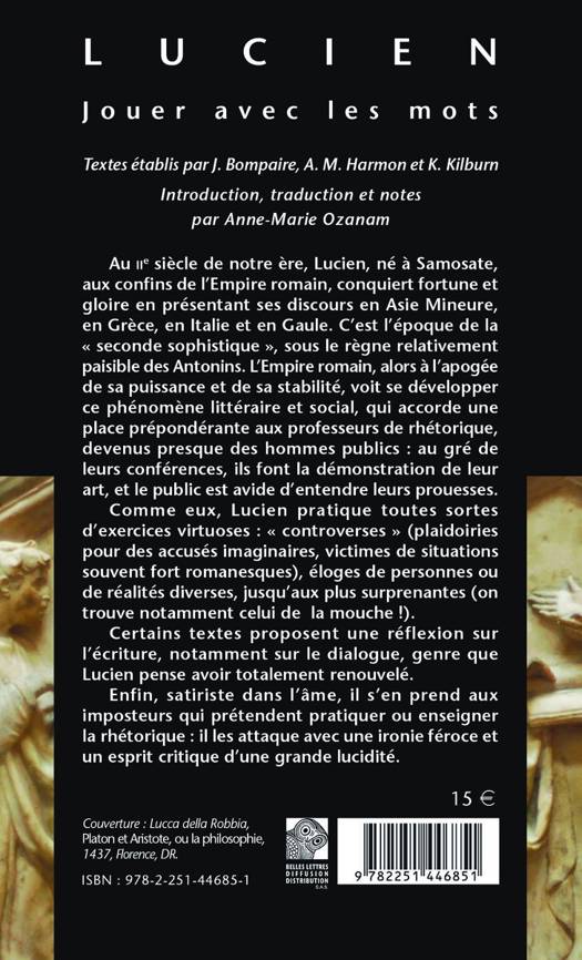 Comme eux, Lucien pratique toutes sortes d’exercices virtuoses : « controverses » (plaidoiries pour des accusés imaginaires, victimes de situations souvent fort romanesques), éloges de personnes ou de réalités diverses, jusqu’aux plus surprenantes (on trouve notamment celui de la mouche !).
