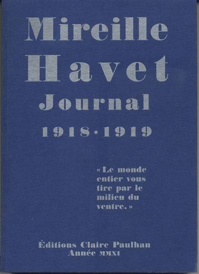 Amie de Guillaume Apollinaire (qui la publia quand elle avait 13 ans), de Colette, de Natalie Barney et de Jean Cocteau, Mireille Havet (1898-1932) a tenu un extraordinaire et monstrueux Journal, dans lequel elle décrit sa "vie de damnation", une vie de guet et d'attente, de songe et d'outrance, une vie aimantée par son "goût singulier" pour l'amour des femmes et des stupéfiants.