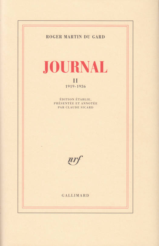 Ici commence, en juillet 1919, le véritable Journal de Roger Martin du Gard : entrepris au sortir de la guerre, sans aucune intention de publication, pour faire pièce au néant en gardant trace des événements d'une vie privée, ce document retrace l'itinéraire d'un homme simple, épris d'ordre, de raison , d'équilibre, et requis par l'ardeur de son imagination autant que par les exigences de sa curiosité bouillonnante. Ces deux tendances contradictoires gouvernent tour à tour les pages tendues de ce Journal, dominé par la dialectique de la passion et de la lucidité. Attentif à ne jamais être dupe, des autres comme de lui-même, Roger Martin du Gard s'est condamné à beaucoup souffrir, à la fois dans ses engagements affectifs, dans ses rapports avec autrui, dans ses réflexions sur "le monde comme il va" , et dans ses ambitions de créateur. On voit ici comment s'édifie l'une des oeuvres fortes de notre premier demi-siècle, comment elle rend compte du tragique de l'individu écrasé par le devenir fatal du collectif, et comment la volonté têtue de refuser l'abdication, les compromissions aventureuses, les bassesses, finit par triompher de l'absurde en plaidant pour l'homme. Témoignage pittoresque, émouvant ou tendre sur ses contemporains, sur la vie intellectuelle et sur l'histoire au quotidien, ce Journal, sans le vouloir, définit aussi peu à peu un art de vivre au milieu des périls et de la folie.