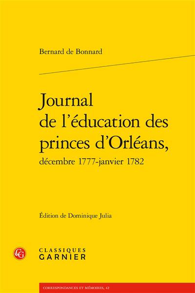 Officier d'artillerie, nommé en 1777 par le duc de Chartres sous-gouverneur du duc de Valois (futur Louis-Philippe Ier) et de son frère, le duc de Montpensier, le chevalier de Bonnard consigne dans ce Journal chaque instant de l'emploi du temps des jeunes princes. Le 5 janvier 1782, il est soudainement évincé de son poste au profit de Mme de Genlis nommée, elle, gouverneur de tous les enfants princiers. Publié pour la première fois, ce Journal d'éducation constitue une source de premier ordre sur l'histoire de l'enfance, puisqu'il rapporte en première personne et au jour le jour les échanges verbaux tenus entre l'équipe attachée à l'éducation et les petits princes eux-mêmes.
