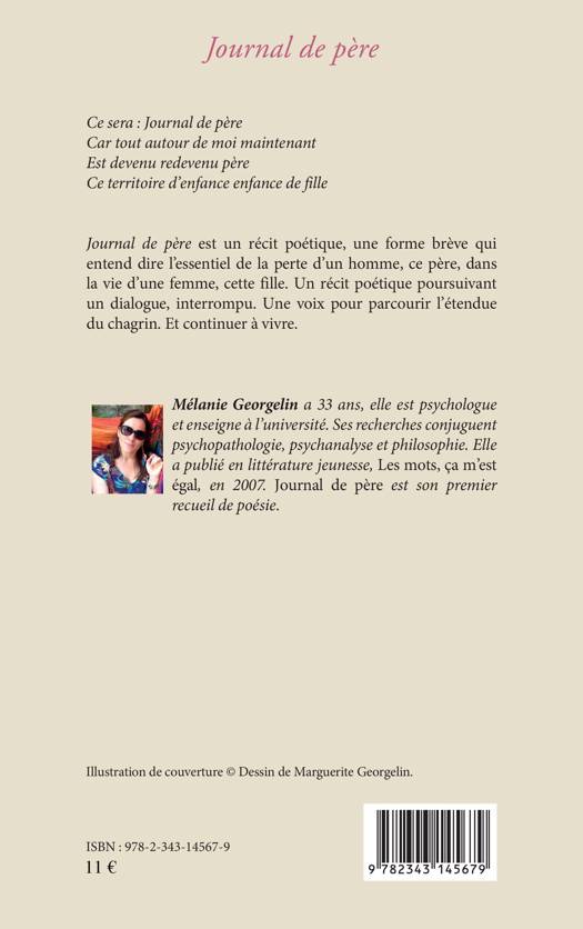Journal de père est un récit poétique, une forme brève qui entend dire l'essentiel de la perte d'un homme, ce père, dans la vie d'une femme, sa fille. Une voix pour parcourir l'étendue du chagrin. Et continuer à vivre.
