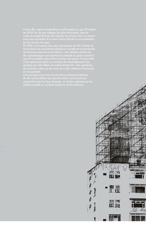 JR a acquis une renommée internationale à l'âge de 27 ans, lorsqu'il a reçu le prix TED. Son projet "Inside Out" a attiré plus de 200 000 personnes dans le monde. Mais JR a une ville de prédilection, il s'agit de Rio. Il démarre cette aventure carioca avec «Women are heroes.» C'est par ce souhait de laisser une oeuvre pérenne qu'en 2016, le Comité Olympique lui demande de réaliser une oeuvre à la hauteur de l'événement. C'est dans ce contexte que l'artiste va concevoir "son oeuvre la plus folle" selon ses propres mots : «Géants». Juché sur un échafaudage, un athlète haut de plusieurs étages saute par-dessus un immeuble abandonné, tandis qu'au pied du Pain de Sucre, une nageuse effraie les bateaux de passage et qu'à Barra da Tijuca un plongeur s'apprête à défier les plus grands cétacés. JRr