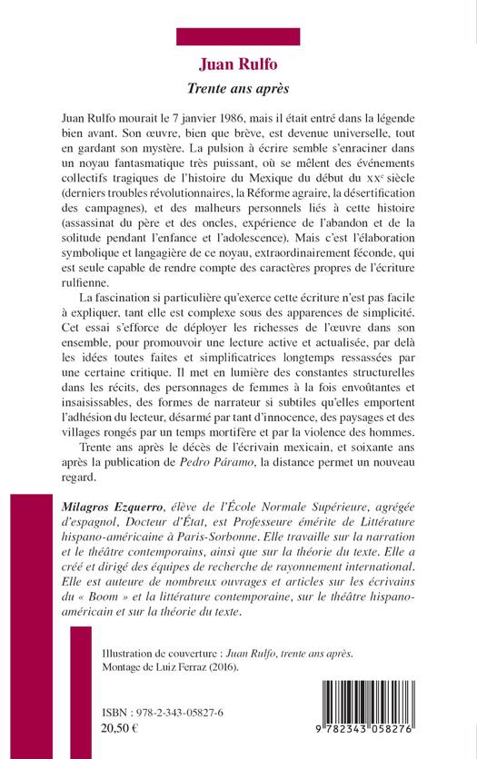 Juan Rulfo mourait le 7 janvier 1986, mais il était entré dans la légende bien avant. La pulsion à écrire semble s'enraciner dans un noyau fantasmatique très puissant, où se mêlent des événements collectifs tragiques de l'histoire du Mexique du début du XXe siècle. Cet essai s'efforce de déployer les richesses de l'uvre dans son ensemble, pour promouvoir une lecture actualisée, par-delà les idées toutes faites longtemps ressassées par une certaine critique.