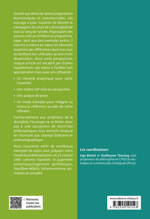 Destiné aux élèves de classes préparatoires économiques et commerciales, cet ouvrage a pour vocation de devenir le compagnon du cours de culture générale tout au long de l’année. Regroupant des auteurs clefs sur le thème du programme ainsi que des exemples précis, il cherche à mettre en valeur les éléments essentiels des différentes doctrines tout en facilitant leur utilisation au sein d’une dissertation.