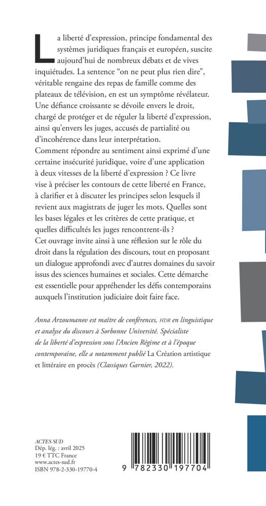 La liberté d'expression, principe fondamental des systèmes juridiques français et européen, suscite aujourd'hui de nombreux débats et de vives inquiétudes. La sentence "on ne peut plus rien dire", véritable rengaine des repas de famille comme des plateaux de télévision, en est un symptôme révélateur. Une défiance croissante se dévoile envers le droit, chargé de protéger et de réguler la liberté d'expression, ainsi qu'envers les juges, accusés de partialité ou d'incohérence dans leur interprétation. Comment répondre au sentiment ainsi exprimé d'une certaine insécurité juridique, voire d'une application à deux vitesses de la liberté d'expression ? Ce livre vise à préciser les contours de cette liberté en France, à clarifier et à discuter les principes selon lesquels il revient aux magistrats de juger les mots. Quelles sont les bases légales et les critères de cette pratique, et quelles difficultés les juges rencontrent-ils ? Cet ouvrage invite ainsi à une réflexion sur le rôle du droit dans la régulation des discours, tout en proposant un dialogue approfondi avec d'autres domaines du savoir issus des sciences humaines et sociales. Cette démarche est essentielle pour appréhender les défis contemporains auxquels l'institution judiciaire doit faire face.