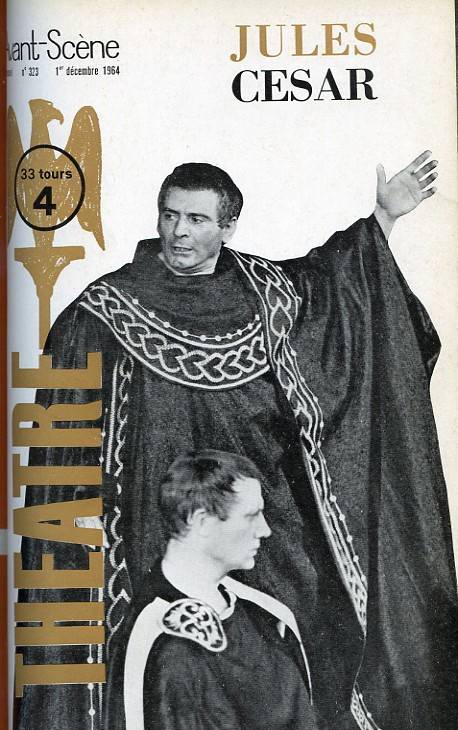 Jules César : (William Shakespeare) L’assassinat de César, le déchirement de Brutus, face aux décisions qu’il doit prendre... Cette pièce est née de deux pièces plus anciennes et perdues : Le Meurtre de César et La Vengeance de César, et l’œuvre traite les deux sujets, le premier dans les trois premiers actes : la conjuration et l’assassinat à Rome -, le second au cours des deux derniers actes : la bataille de Philippes en rase campagne.