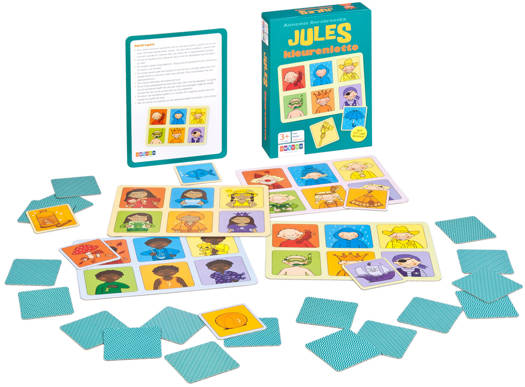 Met dit lottospel leren kinderen samen met Jules om kaartjes met de juiste kleur en het juiste thema te verzamelen. Spelenderwijs leren kinderen kleuren en voorwerpen herkennen die bij elkaar horen. Wie heeft de oranje taart die hoort bij de oranje jarige Jules? En wie heeft de gele laars die hoort bij de gele cowboy Jules? De kaartjes verzamelen kinderen op een eigen spelbord. Wie als eerste zijn kleurige spelbord vol heeft, wint. Een gezellig spel voor jong en oud!